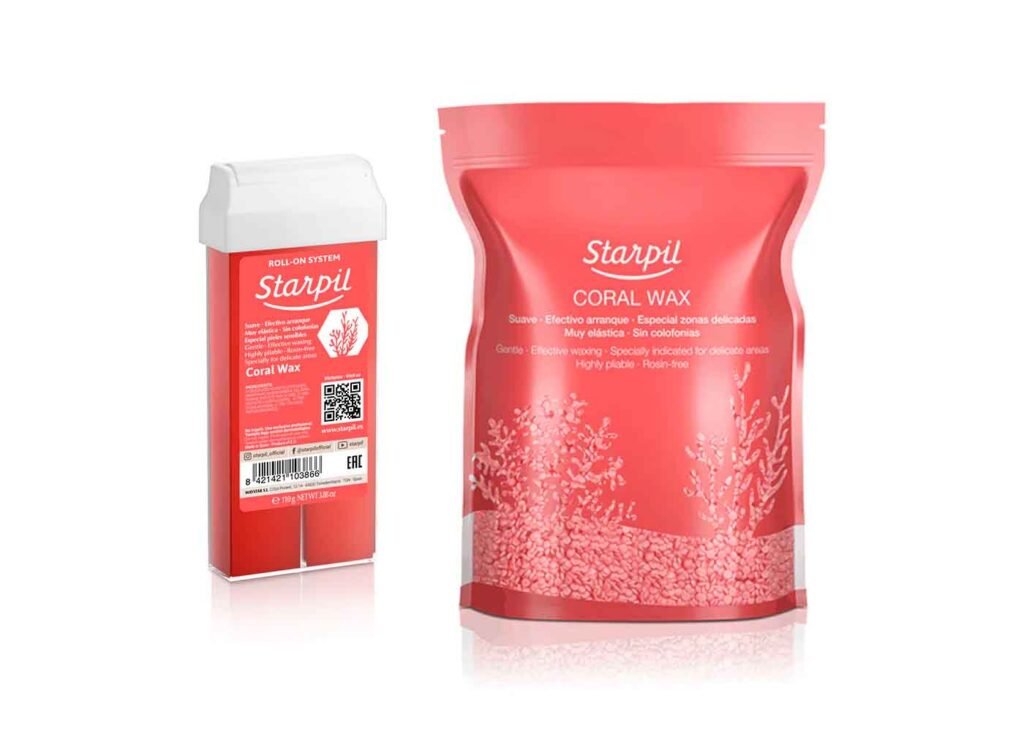 Starpil ofrece una amplia variedad de ceras de alta calidad diseñadas para adaptarse a todo tipo de piel y necesidades. Desde ceras en roll-on para una depilación rápida y precisa, hasta ceras de baja fusión en pastillas o perlas, y ceras liposolubles templadas en lata para un acabado profesional.